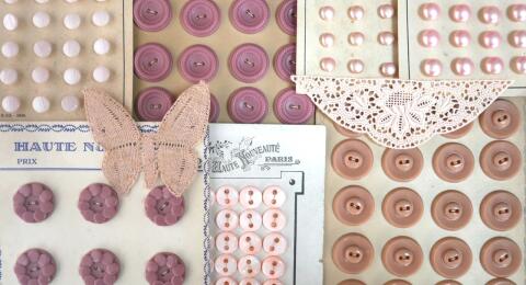 フランスヴィンテージフェイクパールピンクガラスボタンシートA(直径1.0cm)