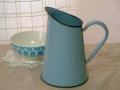 パリの蚤の市で出会ったホウロウ製のピッチャーです。内面と外側が水色、底と注ぎ口の部分にブルーのラインが入ったピッチャーです。取っ手接合部に4箇所ホウロウのカケ、内面にに2箇所カケがあります。注ぎ口と底のブルーラインの部分にホウロウのカケがあります。全体的なコンディションは悪くはありません。とってもきれいな色の小ぶりのピッチャーです。 *フランス ホーロー製 *サイズ 底直径約12.5cmX高さ約18.5cm