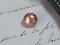 パリの蚤の市で出会ったヴィンテージ足つき半球パールボタンです。1930年代の光沢のあるアプリコットピンクの小さな半球型のフェイクパールボタンです。汚れ、キズがありますが光沢がありコンディションは悪くありません。 ※直径、厚み等若干不揃いです。これも魅力とご理解ください。 ボタン1個の価格です。 *フランス製 *サイズ ボタン 直径約0.7~0.9cm