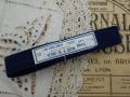 フランスから届いたネイビーコットン巻きリボン(AU PRINTEMPS PARIS) です。1865年開業のパリの老舗デパートPrintempsのメルスリーで販売されていたネイビーカラーの平織の撚糸(よりをかけた糸)コットンリボンです。未使用品に近い状態の帯付き巻きリボンです。経年による汚れ、傷み等ありますがコンディションは良いです。実用品としてもお使いいただけますが、雰囲気のある素敵な巻きリボンですディスプレイとしてもどうぞ! *フランス *サイズ 巻き状態約16.5cmX厚み約2.2cm、リボンの幅約2.5cm、ラベルサイズ約8cmX約2cm、重さ約45g