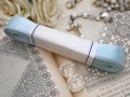 フランスから届いた淡いブルーのサテンリボンです。光沢のある上品な水色のしっかりとしたサテン素材の未使用品デッドストックの帯付き巻きリボンです。経年による汚れ、傷みがありますコンディションは悪くありません。実用品としてもお使いいただけますが、雰囲気のある素敵な巻きリボンですディスプレイとしてもいかがでしょうか。 *フランス *サイズ 巻き状態約13.2cmX厚み約2.5cm リボンの幅約1.9cm