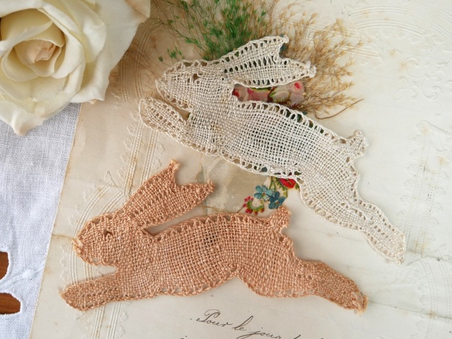 フランスうさぎのボビンレースリネンアップリケ 2点セット