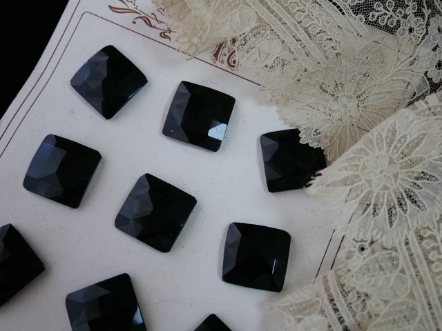 フランスヴィンテージブラックガラスファセットカットデザインボタン(2.0cm角)