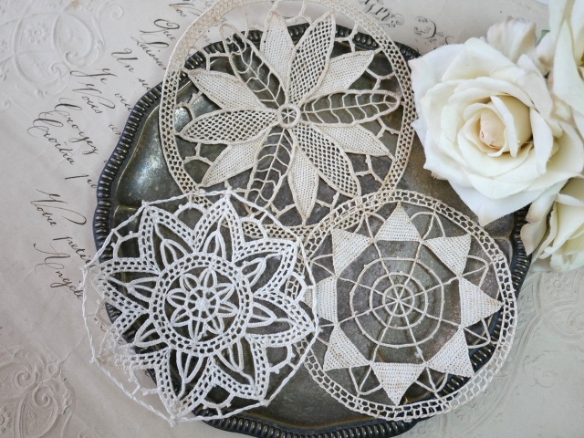 フランスアンティークラウンドプティモチーフレース 3個セット A