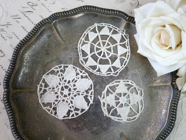 フランスアンティークラウンドモチーフレース 3個セット D