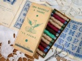 フランスから届いたアンティークのボックス入りの小さなシルク糸巻きセットです。1920~30年代のもので筒状に丸めた紙に縫製用の天然のシルク糸がまかれた糸巻きが12本収められています。アソートボックスでいろいろなカラーのシルク糸が入っています。オリジナルから中身は入れ替わっているようで同色のものが数本や番手の違う糸巻きが収められています。ほとんどが未使用に近い状態です。経年による汚れ、ボックスの傷みが多少ありますが、コンディションは良いです。糸は実用品としても十分お使い頂けそうです。 *フランス *サイズ ボックス約14.5cmX約6.5cmX約1.5cm 糸巻き各約5.7cmX直径約1.1cm