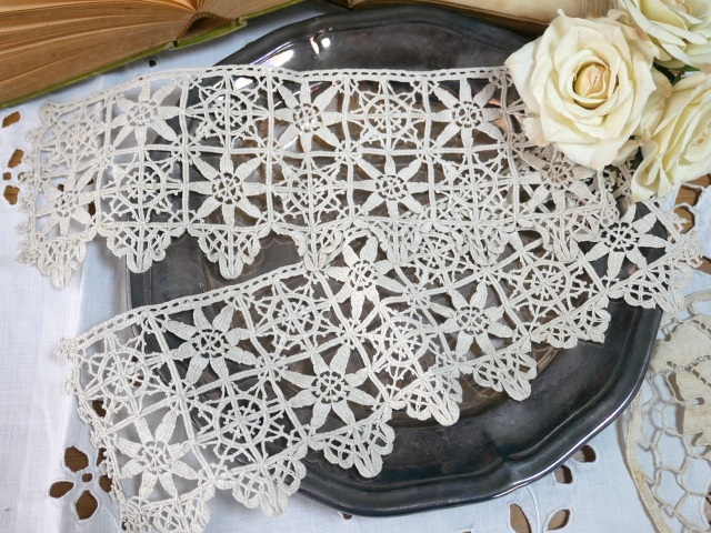 フランスアンティ―クハンドメイドボビンレース装飾パーツ2点セット