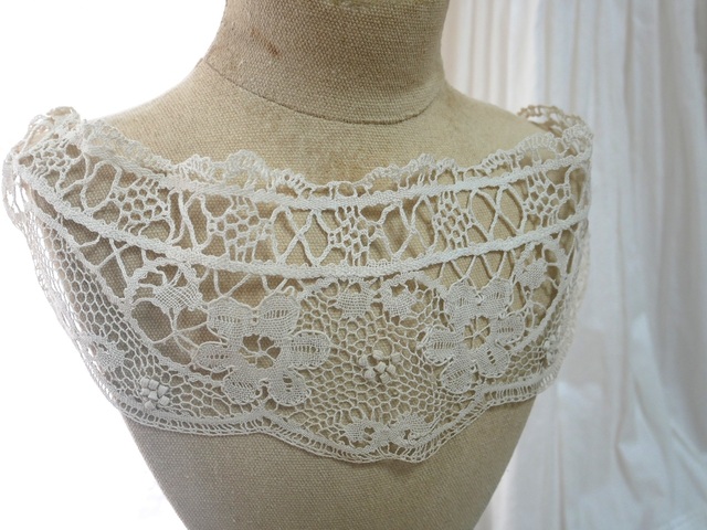 フランスヴィンテージハンドメイドボビンレース襟飾りA