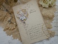 フランスから届いたアンティークの直筆の手紙です。1899年にご両親に宛てて送られたお手紙です。縁にレース状のエンボス加工が施された便箋にマーガレットの絵柄、そしてお花のリース、ベル、白鳩の3Dタイプの豪華なクロモスが貼られています。二つ折りの便箋で表と開いた中にも文章が書かれてあります。破れと経年による汚れ、シミがありますが、大切に保管されていたようで全体的なコンディションは悪くありません。大変貴重な直筆のお手紙です。 *フランス サイズ 縦約20.9cmX横約13.9cm