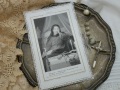 フランスから届いたフランスアンティークHoly Card・カニヴェです。ペーパーレースなどで縁取られた美しい聖画カードをフランスではカニヴェと言います。19世紀後期の繊細なペーパーレースで縁取られ中央に聖画の銅版画が描かれた素敵なホーリーカードです。裏は聖書の言葉が書かれ、鉛筆で1888年の記載もあります。経年による汚れ、傷みも少なく、全体的なコンディションは良いです。 *フランス サイズ 約12.2cmX約8.0cm