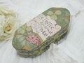 フランスから届いたフランス最古のパフュームリーL.T.PIVERのパフュームボックスです。1896~1920年に製造されていた香水が入っていたお箱で、蓋の上部と側面にはクローバーストロベリーキャンドルのお花のイラストが描かれた大変素敵なボックスです。経年による蓋部分に亀裂と閉じ方により蓋部分にずれが生じますが、全体的な汚れ、傷みなどは少なくコンディションは良いです。 *フランス 紙製箱 サイズ 約13.7cmX約6.0cmX約4.7cm