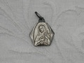 フランスから届いたリジューのテレーズのシルバーメダイです。1940年代シルバー製でリジューのテレーズのレリーフデザインが施された小さなメダイです。経年による細かなキズや汚れ、変色等ありますが、保存状態、コンデションは良いです。小さいですが存在感のある素敵なメダイです。 *フランス サイズ 約1.9cmx約1.6cm(金具部分含む)、厚み約0.1cm